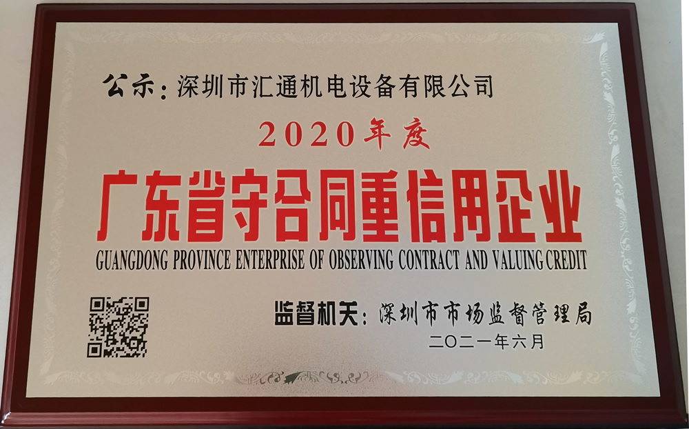 近日,廣東省市場監(jiān)督管理局公布了“2020年度廣東省守合同重信用企業(yè)”名單。深圳市匯通機(jī)電設(shè)備有限公司憑借良好的社會(huì)信譽(yù)、誠實(shí)守信的經(jīng)營原則、健全的合同管理體系及完善的售后服務(wù)流程體系,被授權(quán)“2020年度廣東省守合同重信用企業(yè)”的榮譽(yù)稱號。 “誠信者,天下之結(jié)也”。誠信是一個(gè)企業(yè)的立身之本,亦是維護(hù)市場經(jīng)濟(jì)秩序的重要原則。